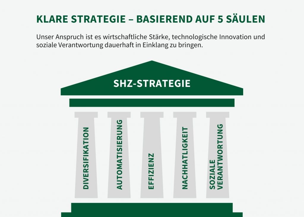 Franziska und Matthias Böhme blicken optimistisch in die Zukunft. Aufbauend auf fünf strategischen Säulen treibt das neue Führungsteam die Weiterentwicklung der SHZ GmbH gezielt voran – mit dem Anspruch, wirtschaftliche Stärke, technologische Innovation und soziale Verantwortung dauerhaft in Einklang zu bringen.